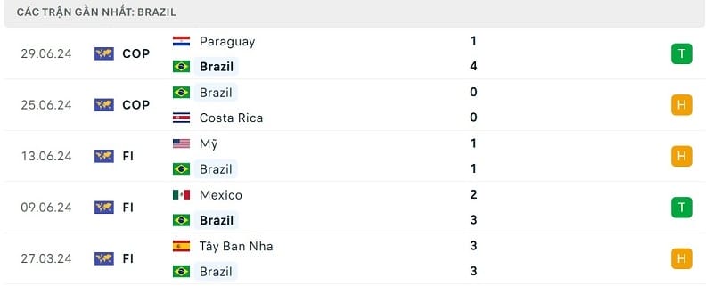 Phong độ gần đây Brazil vs Colombia