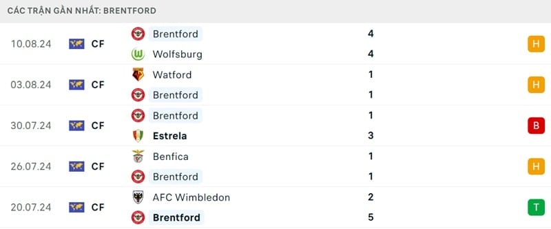 Bước vào giai đoạn đá giao hữu hè 2024, thầy trò Thomas Frank chơi thiếu ổn định. Sau 6 trận làm nóng, họ chỉ thắng 2, hòa 3 và nhận 1 thất bại. Brentford đang chuẩn bị cho trận derby London thứ ba ở vòng mở màn trong 4 mùa giải gần nhất tại Ngoại hạng Anh. Những kết quả nội chiến với gã hàng xóm thường mang lại tín hiệu lạc quan, khi Brentford từng hạ Arsenal vào năm 2021, và hoà Tottenham Hotspur vào năm 2023.