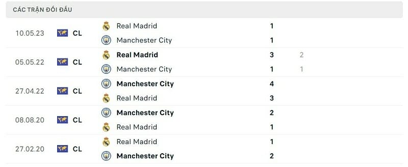 Lịch sử đối đầu Man City vs Real Madrid