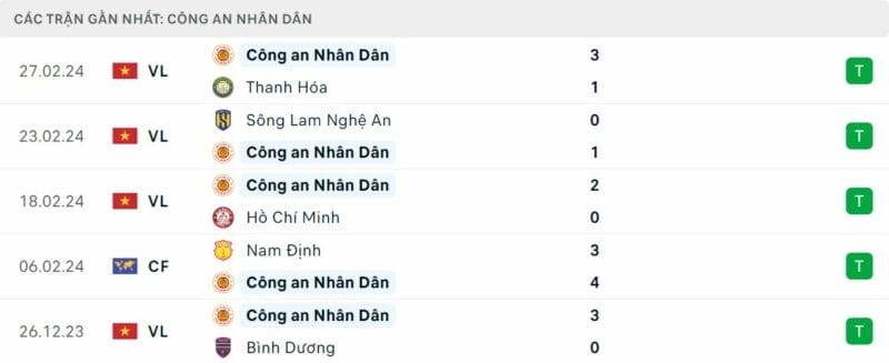 Phong độ CAHN vs Hà Tĩnh: