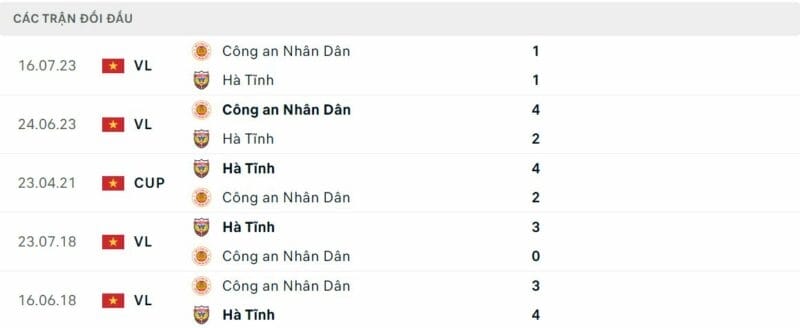 Thành tích đối đầu CAHN vs Hà Tĩnh: