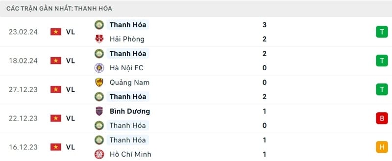 Phong độ gần đây CAHN vs Thanh Hóa: