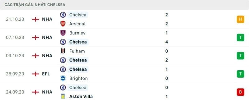 Phong độ Chelsea vs Brentford