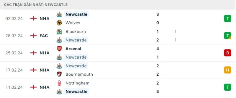 Đội bóng mang biệt danh Chích chòe đã thắng tới 6 và hòa 2 trong 10 trận gần nhất tính ở mọi đấu trường. Tại vòng 27 Ngoại hạng Anh vừa qua, Chích chòe đã chơi vô cùng xuất sắc trên sân nhà, khi đánh bại đội bóng có phong độ cao là Wolves với tỉ số 3-0. Khả năng thi đấu xa nhà của Newcastle cũng được giới chuyên môn tin tưởng, bởi họ đã thắng 5/6 trận gần đây. Lần duy nhất Chích chòe thất bại là chuyến làm khách tới sân Emirates của Arsenal.
