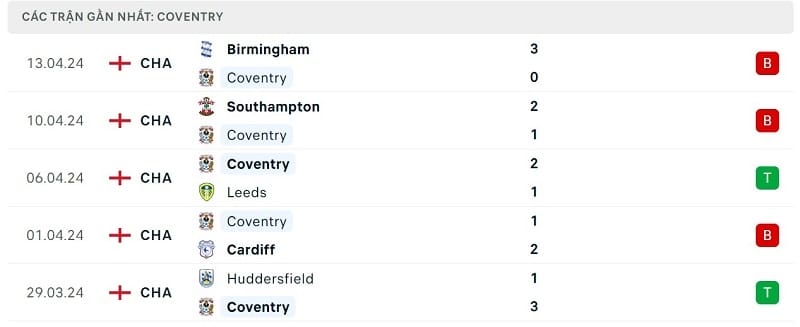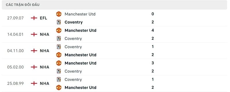 Xét về mặt phong độ, Coventry đang không có thành tích tốt thời gian gần đây. Đoàn quân của HLV Mark Robins chạy đà cho trận gặp Man United bằng thất bại với tỷ số đậm 0-3 trước Birmingham. Trước đó, Coventry đã bị Southampton đánh bại với tỷ số 1-2.
