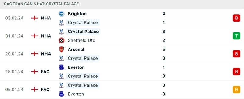 Thành tích đối đầu Crystal Palace vs Chelsea: