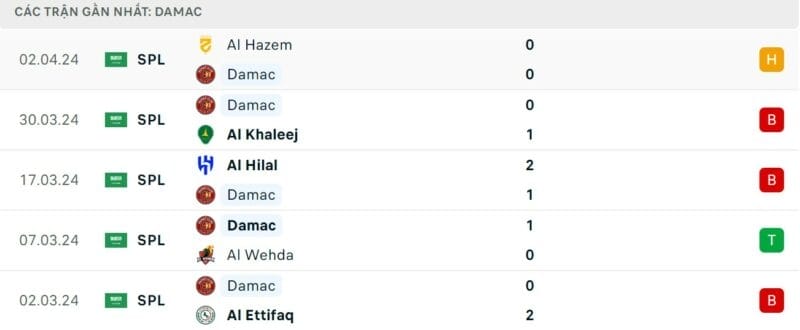 Phong độ gần đây Damac vs Al Nassr