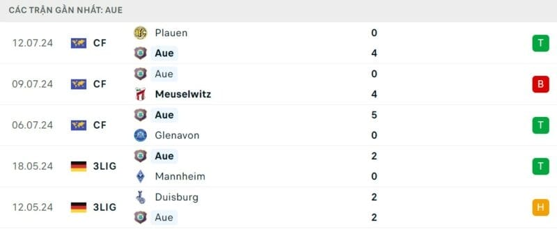 Phong độ Erzgebirge Aue vs Dortmund