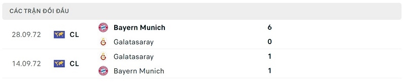 Thành tích đối đầu Galatasaray vs Bayern Munich:
