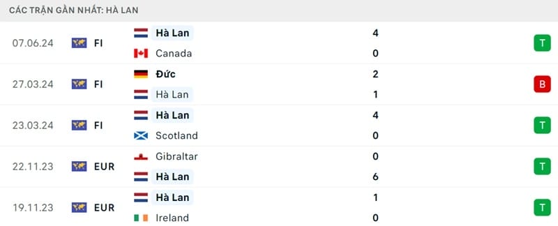 Hà Lan thắng 5 trong 6 trận gần đây nhất trên mọi đấu trường, bao gồm cả màn vùi dập 4-0 trước Canada. Do đó, họ đang tiến tới EURO 2024 với phong độ thuyết phục. Hà Lan chỉ gặp Iceland 12 lần trước đó, và họ thắng 9 trận. Song, ở hai lần đụng độ gần nhất, Iceland đều quật ngã Hà Lan tại vòng loại EURO 2016.