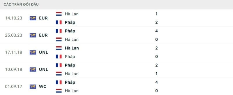Người Hà Lan rất muốn phục thù ở lần tái đấu này. Tuy nhiên lịch sử chỉ ra rằng họ là con mồi ưa thích của Pháp. Les Bleus đã thắng tới 7 trong 8 lần gần nhất chạm trán đối thủ này. Lịch sử đối đầu vượt trội là điều tiếp thêm sự tự tin cho thầy trò HLV Didier Deschamps trong trận đấu với đối thủ lớn nhất tại bảng D Euro 2024.