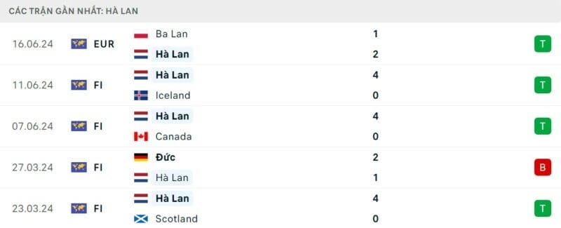 - Hà Lan: Verbruggen; Ake, Van Dijk, De Vrij, Dumfries; Reijnders, Schouten, Gakpo, Simons, Frimpong; Depay.