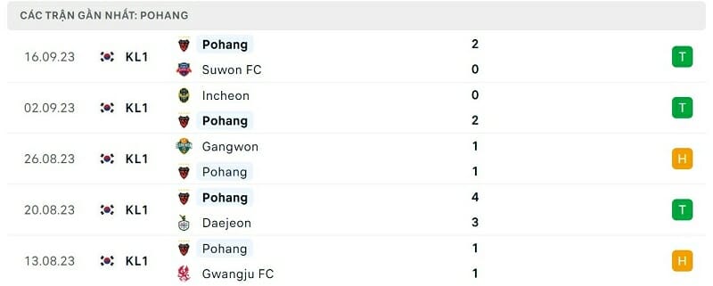 Phía bên kia chiến tuyến, Pohang Steelers đang có phong độ cực kỳ ấn tượng. Tính trong 5 trận gần nhất, đoàn quân của HLV Kim Gi Dong không phải nhận bất cứ thất bại nào (3 thắng, 2 hòa). Xét rộng hơn, Pohang Steelers hiện có chuỗi 9 trận bất bại liên tiếp (5 thắng, 4 hòa). Thành tích này giúp Kim Seung Dae cùng các đồng đội đứng nhì K-League, kém đội dẫn đầu là Ulsan Hyundai 6 điểm.