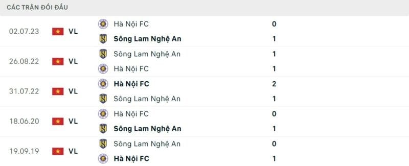 Thành tích đối đầu Hà Nội vs SLNA