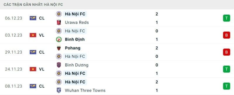 Phong độ Hà Nội vs SLNA