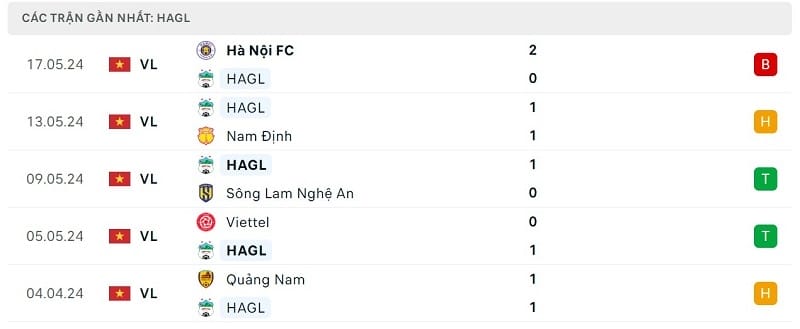 Ở trận đấu gần nhất, HAGL đã phải nhận thất bại với tỷ số 0-2 trước Hà Nội. Kết quả này khiến đoàn quân của HLV Vũ Tiến Thành bỏ lỡ cơ hội để gia tăng khoảng cách với nhóm đua trụ hạng. HAGL hiện có tổng cộng 22 điểm và đứng thứ 11 tại V-League 2023/24.