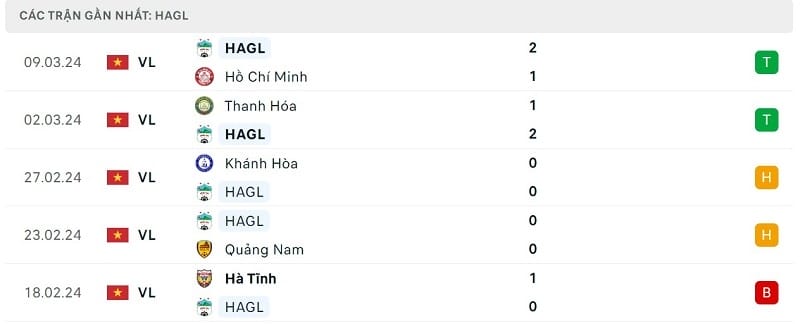 Thành tích đối đầu HAGL vs Khánh Hòa