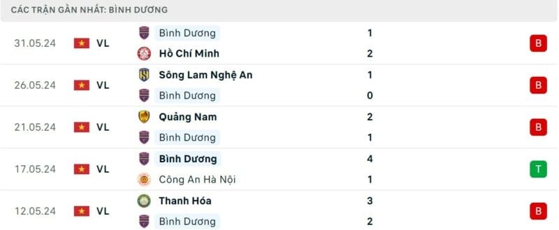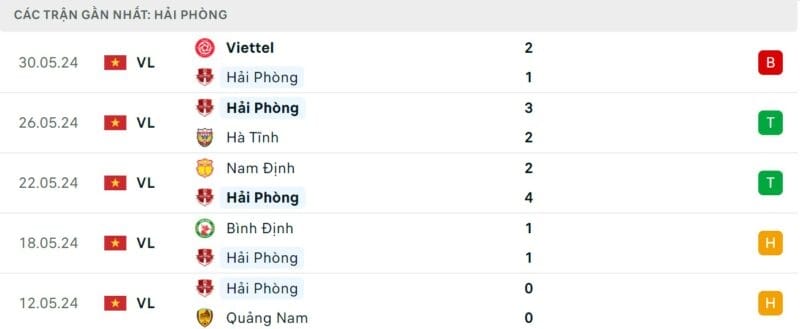 Phong độ gần đây Hải Phòng vs Bình Dương
