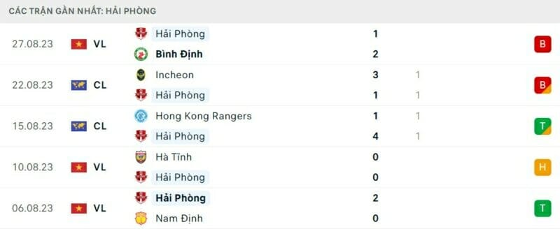 Phong độ Hải Phòng vs PSM Makassar
