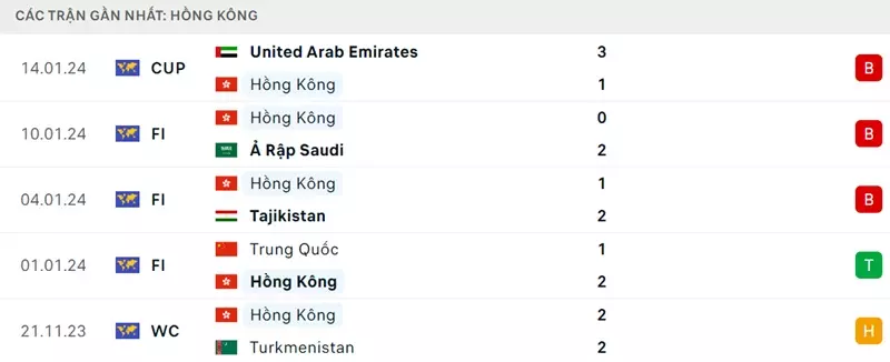 Phong độ gần đây Hồng Kông vs Iran: