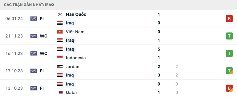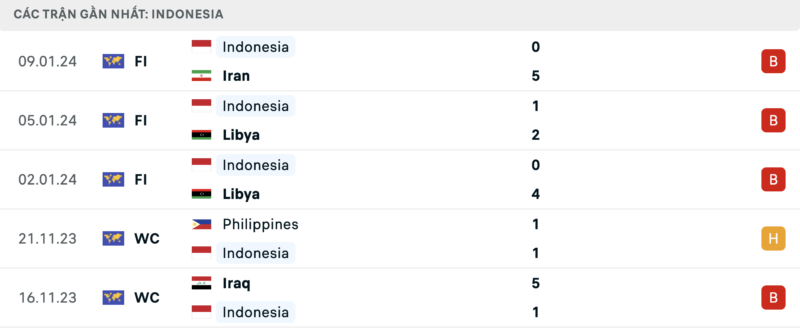 Phong độ Indonesia vs Iraq