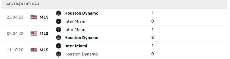 Thành tích đối đầu Inter Miami vs Houston Dynamo: