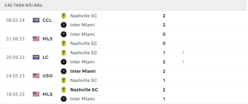 Phong độ không cao, Nashville còn chịu bất lợi ở khả năng đối đầu trước Inter Miami. Thống kê của chúng tôi cho thấy, đội bóng của huyền thoại David Beckham đã thắng 2 và hòa 2 trong 4 lần hai đội đụng độ vừa qua. Nashville cũng chưa thể thắng trong 2 chuyến làm khách gần nhất đến sân Chase Stadium của Inter Miami. Chuyên gia dự báo Nashville sẽ tiếp tục phải nhận trái đắng ở trận đấu sắp tới.