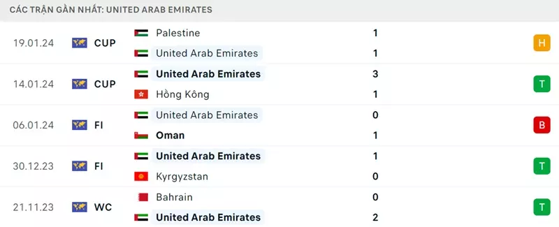 5 trận gặp nhau gần nhất, UAE đều thua Iran và không ghi bất cứ bàn nào. Xét rộng hơn trong 10 trận chạm trán gần nhất, UAE cũng không thắng đối thủ với thành tích hòa 2 và thua tận 8. Thành tích đối đầu thua kém Iran khiến thầy trò HLV Paulo Bento phải bận tâm.