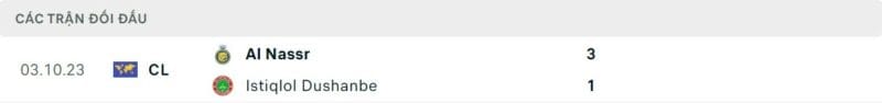 Thành tích đối đầu Istiklol vs Al Nassr