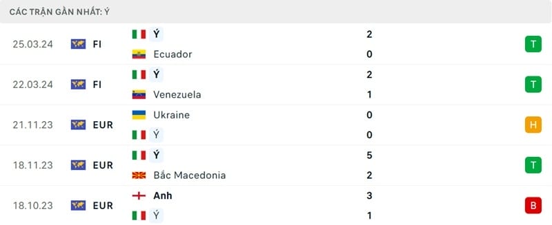 Sau khi giành vé dự EURO 2024, Italia có 2 trận giao hữu tại Mỹ. Sau cú đúp hạ gục Venezuela của Mateo Retegui ở Miami, thầy trò Spalletti đánh bại Ecuador 2-1 ở New Jersey. Những kết quả đó giúp Azzurri giành được 6 chiến thắng sau 9 trận gần nhất kể từ thất bại ở bán kết UEFA Nations League.