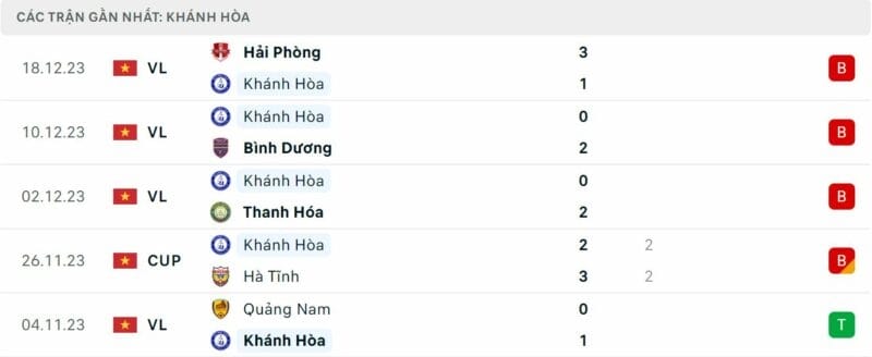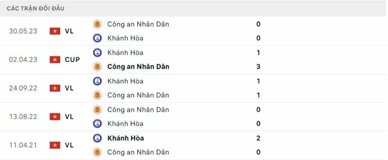 Thành tích đối đầu Khánh Hòa vs CAHN