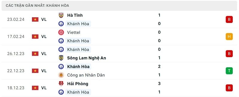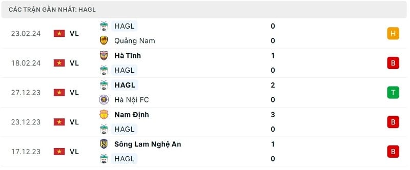 Thành tích đối đầu Khánh Hòa vs HAGL: