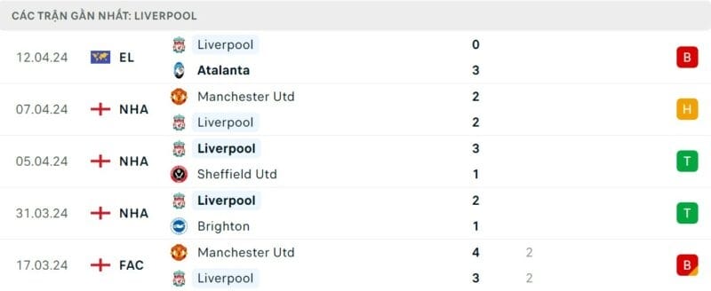 Hồi giữa tuần, Liverpool thậm chí còn nhận một kết quả đáng quên hơn khi để thua muối mặt 0-3 trước Atalanta ngay trên sân nhà Anfield. Thất bại nặng nề ở trận lượt đi khiến cơ hội vượt qua tứ kết Europa League của Liverpool trở nên vô cùng mong manh.