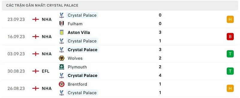 Phía bên kia chiến tuyến, tính riêng tại đấu trường Ngoại hạng Anh, Crystal Palace đang không có phong độ quá ấn tượng. Trong 5 trận gần nhất, đoàn quân của HLV Roy Hodgson có 1 chiến thắng, 2 trận hòa và phải nhận 2 thất bại. Hiện đội chủ sân Selhurst Park tạm đứng vị trí thứ 9 với 8 điểm giành được từ đầu mùa. Với một đội bóng không chi tiêu quá nhiều ở thị trường chuyển nhượng hè và chỉ đặt mục tiêu trụ hạng, họ có thể hài lòng với hoàn cảnh hiện tại.