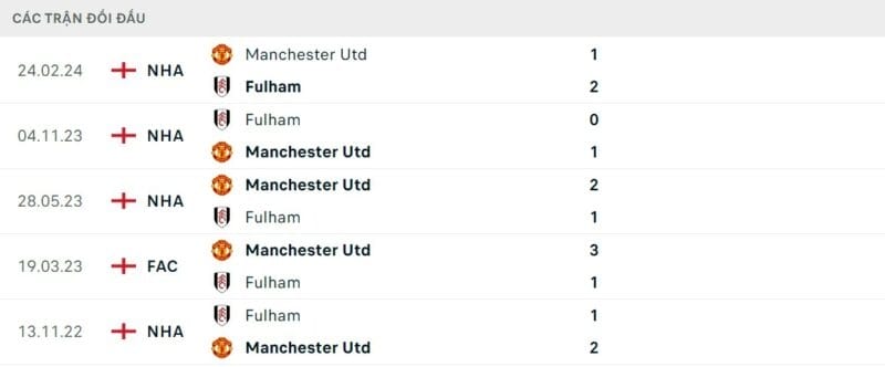 Thành tích đối đầu hoàn toàn nghiêng về Man United. Họ thắng tới 4 trong 5 lần gần đây gặp Fulham. Tuy nhiên trong màn chạm trán gần nhất, Fulham lại là đội giành chiến thắng trước Man United ngay trên sân Old Trafford ở trận lượt về mùa trước.