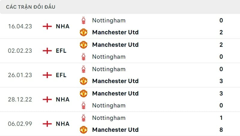 Thành tích đối đầu Man United vs Nottingham Forest