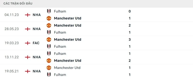 Đầu tiên là phong độ kém cỏi từ Fulham. Đại diện London chỉ thắng 1 trong 8 lần ra sân gần nhất trên mọi đấu trường. Mùa này này, đoàn quân của HLV Marco Silva chỉ có 3 thắng lợi trên sân khách, với 1 trong số đó đến ở vòng mở màn mùa giải Premier League 2023/24. Xét trong khuôn khổ Premier League, Fulham thua tận 5/6 trên khi phải hành quân xa nhà. Ngoài ra, Fulham còn có thành tích đối đầu thua kém Man Utd. Được biết, đội chủ sân Old Trafford đã thắng 14/16 lần gần nhất tiếp đón CLB thủ đô trên sân nhà. Xét ở phạm vi rộng hơn, Man Utd có 18 trận gần nhất bất bại trước Fulham, và ca khúc khải hoàn 15 lần trong số đó.
