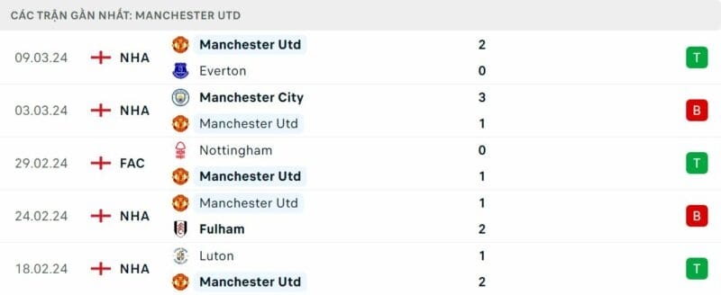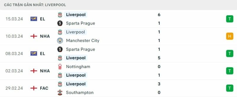 Phong độ MU vs Liverpool