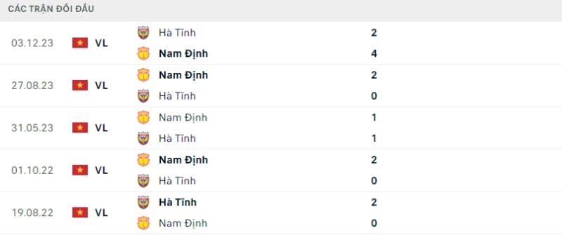 Thành tích đối đầu Nam Định vs Hà Tĩnh
