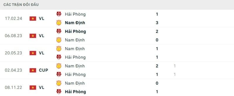 Thành tích đối đầu Nam Định vs Hải Phòng