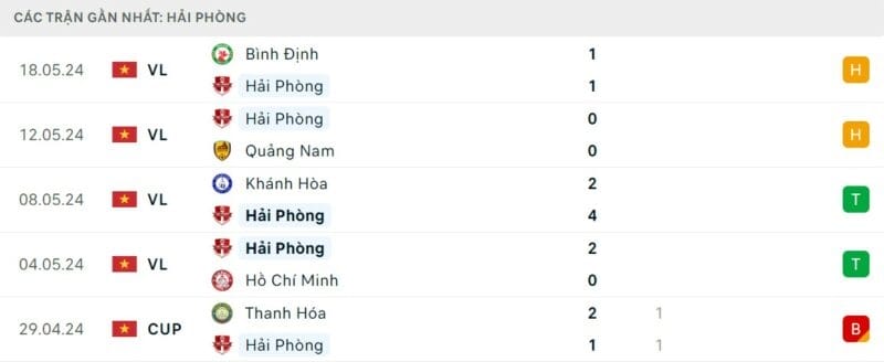 Phong độ Nam Định vs Hải Phòng