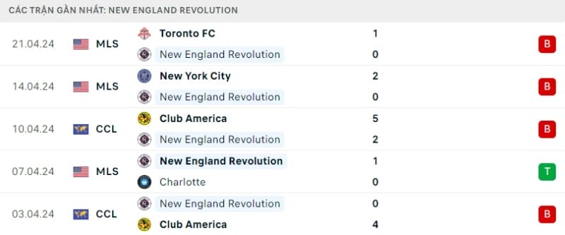 New England rất cần chiến thắng, nên họ có quyết tâm lớn trong việc giành 3 điểm trước Inter Miami. Tuy nhiên, phong độ gần đây có thể không cho phép thầy trò ông Caleb Porter hoàn thành mục tiêu đề ra. Cụ thể, New England đã nhận thất bại ở cả hai trận gần nhất tại giải MLS 2024. Họ cũng hòa và thua ở 2/3 lần đón khách vừa qua.