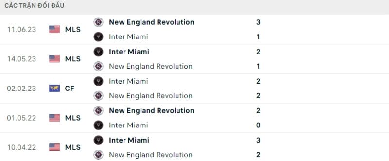 Lịch sử đối đầu cũng ít nhiều nghiêng về câu lạc bộ Inter Miami, khi đã thắng 3/5 trận đụng độ New England gần nhất. Do đó, các chuyên gia kỳ vọng Messi và các đồng đội sẽ có trọn vẹn 3 điểm trên sân khách.