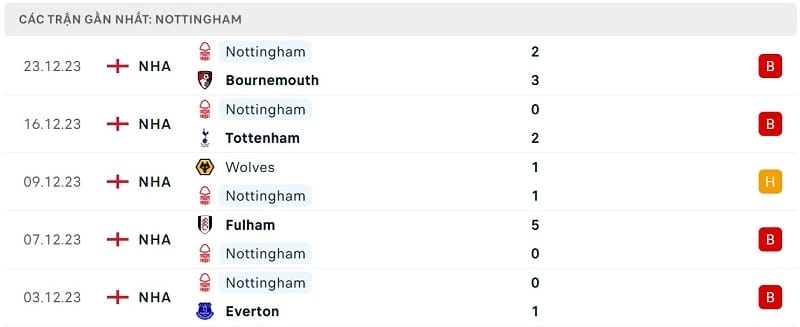 Phong độ Newcastle vs Nottingham Forest: