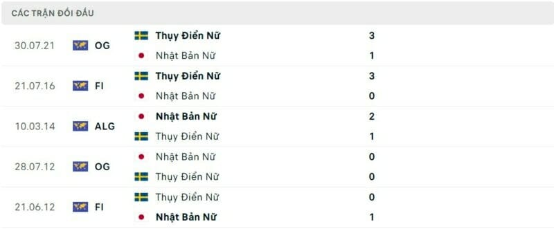 • Thành tích đối đầu nữ Nhật Bản vs nữ Thụy Điển