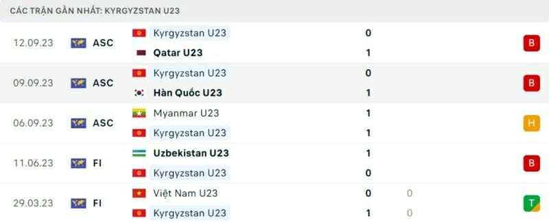 Trong khi đó, Kyrgyzstan vừa thi đấu không thành công tại vòng loại U23 Châu Á. Họ không thắng được trận nào, thậm chí để U23 Myanmar cầm hòa. Dù vậy đội bóng trẻ đến từ Trung Á vẫn là tập thể đáng gờm. Đội tuyển quốc gia Kyrgyzstan đang xếp hạng 97 thế giới, cao hơn rất nhiều so với Indonesia ở vị trí thứ 150. Trong lần chạm trán duy nhất trước đây, U23 Kyrgyzstan cũng đã thắng U23 Indonesia với tỉ số 1-0 vào năm 2017.