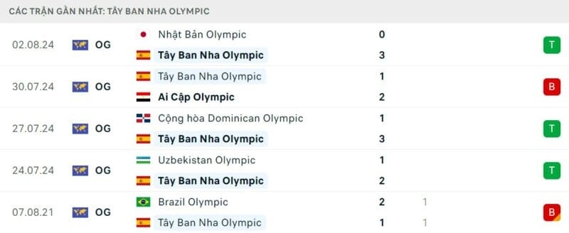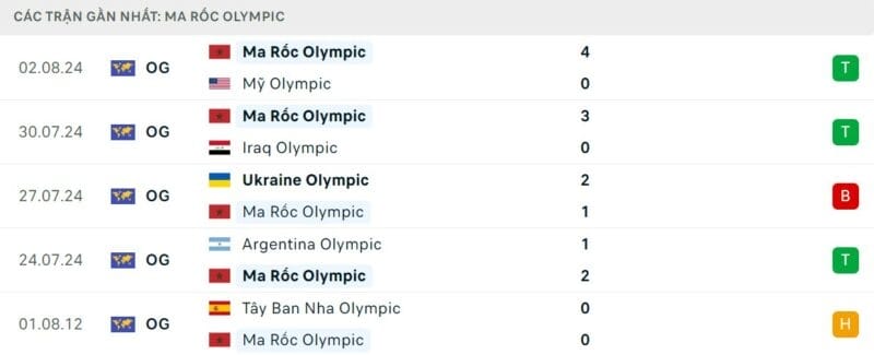 Phong độ Olympic Ma Rốc vs Olympic Tây Ban Nha