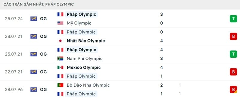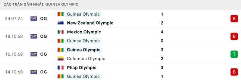 Phong độ gần đây Olympic Pháp vs Olympic Guinea