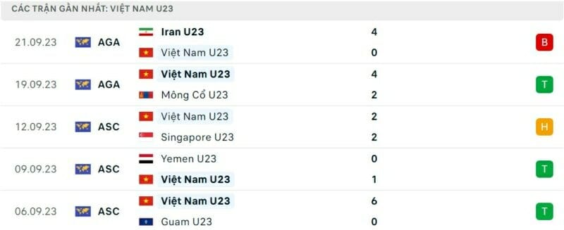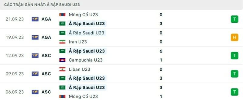 Phong độ gần đây Olympic Việt Nam vs Olympic Ả Rập Xê Út: