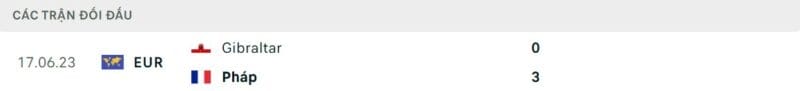 Thành tích đối đầu Pháp vs Gibraltar